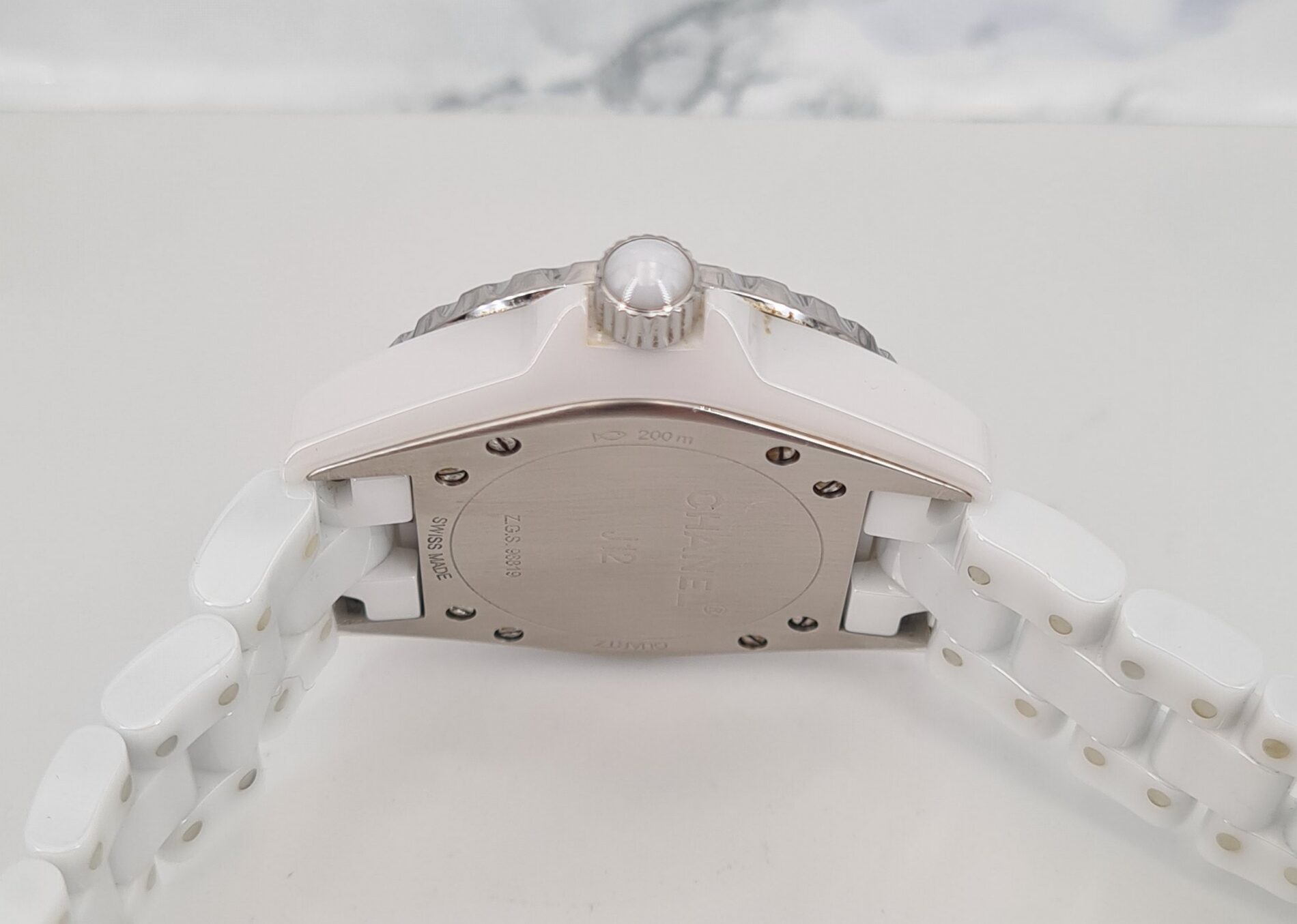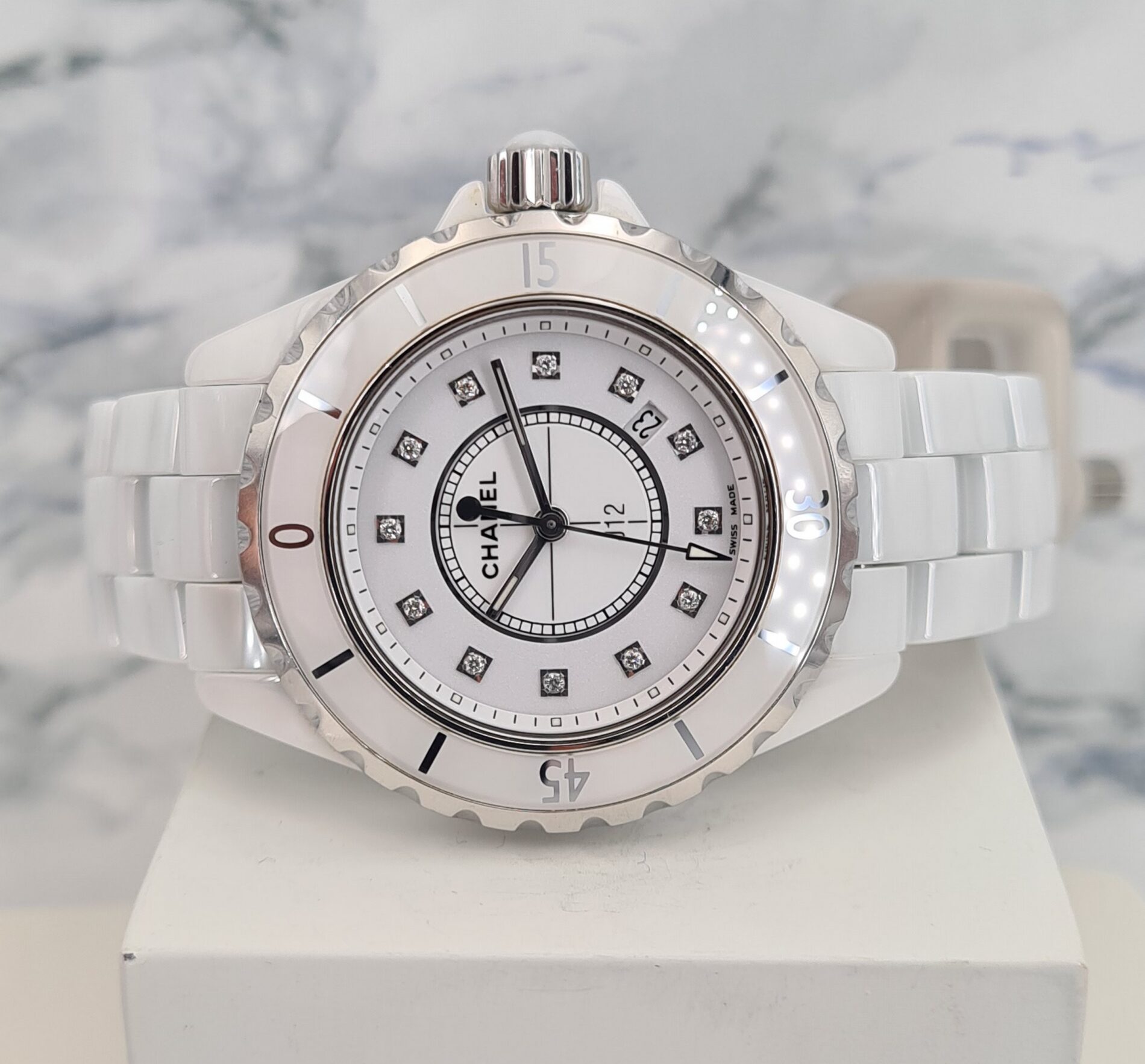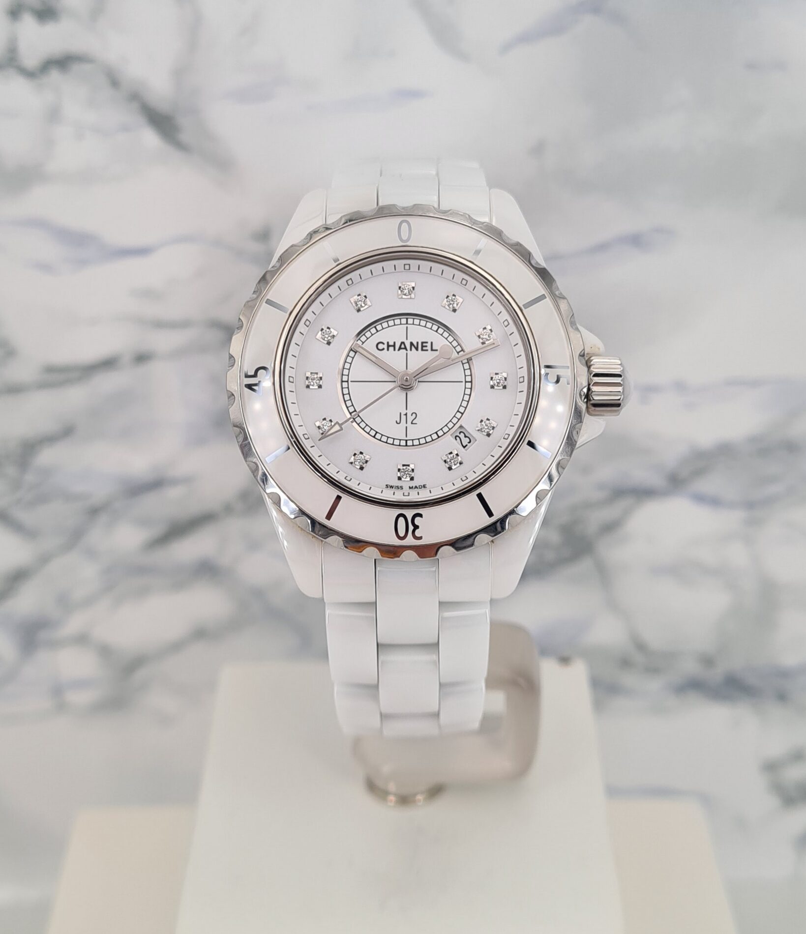 Modèle iconique de la marque Chanel, la J12 a révolutionné son temps en proposant une montre de luxe avec boitier et bracelet en céramique à haute résistance aux rayures ainsi que d’une étanchéité de 200m ce qui lui confère un ADN de plongeuse.