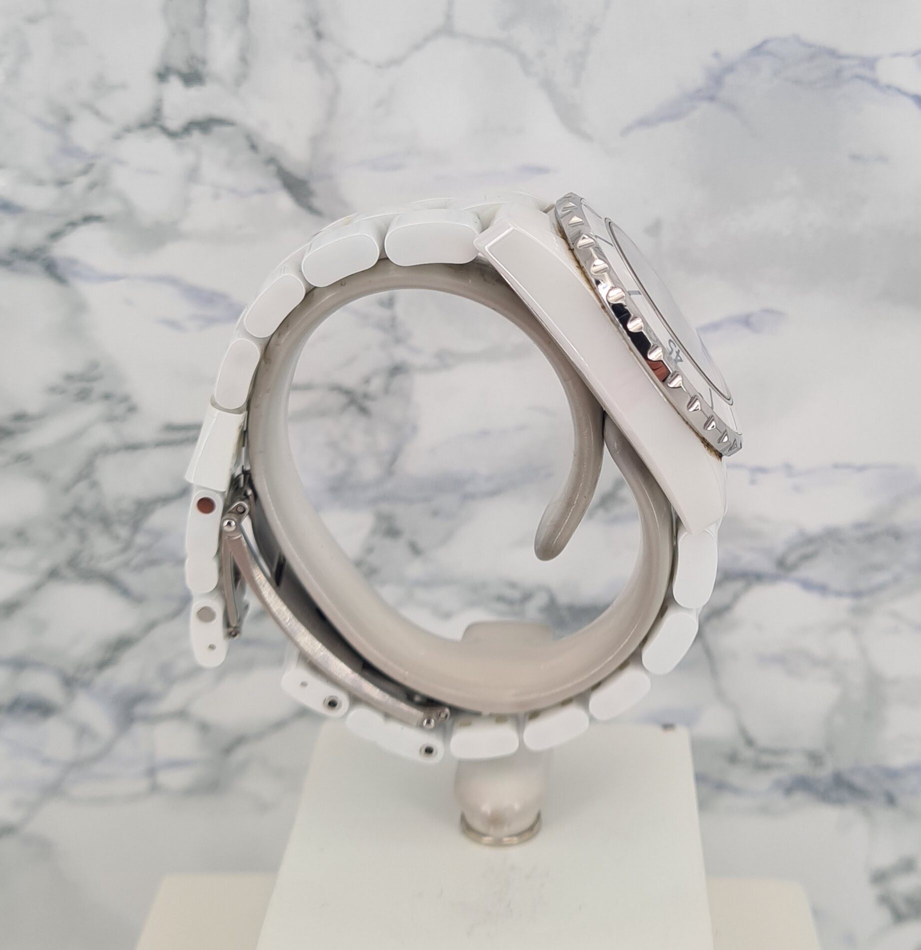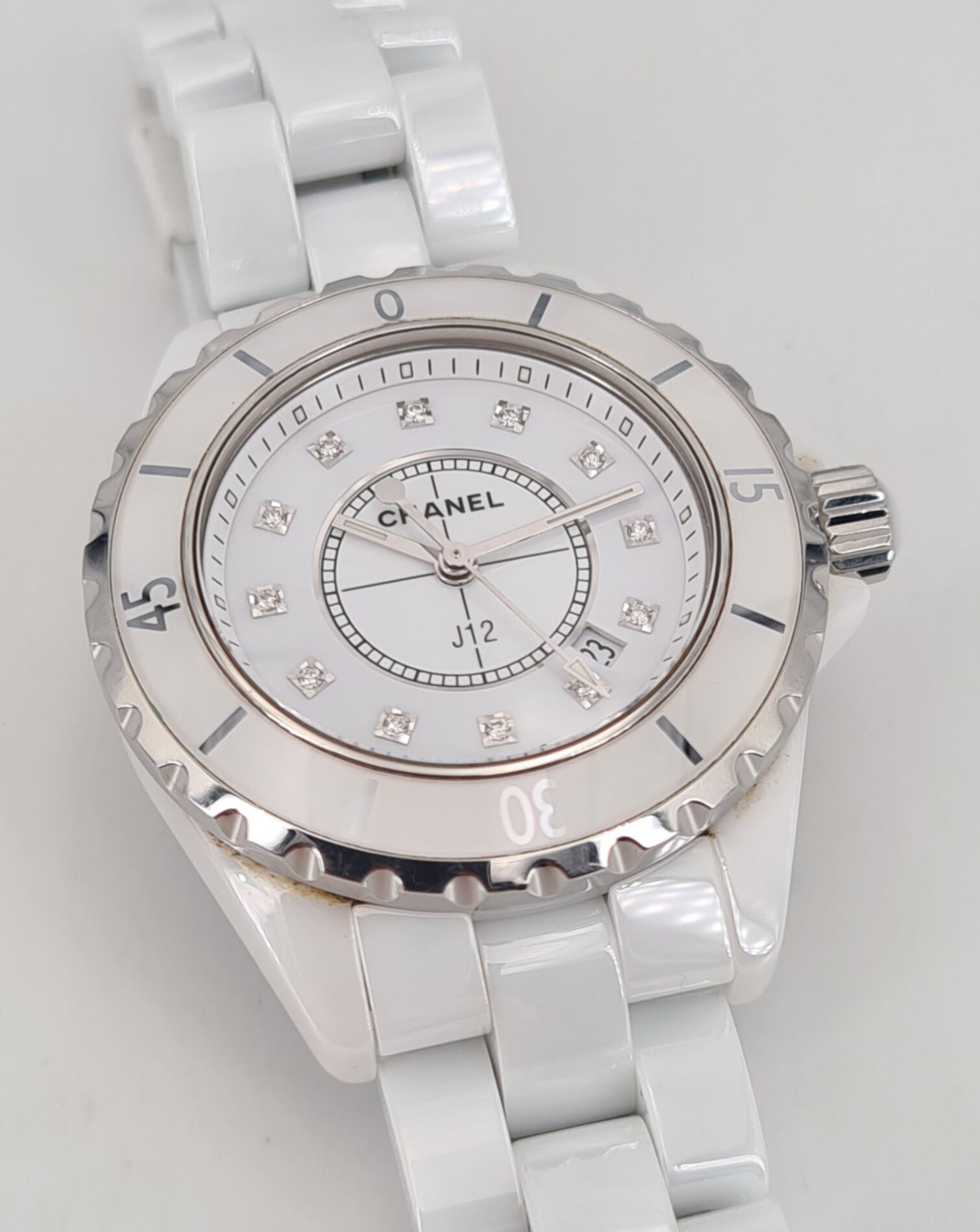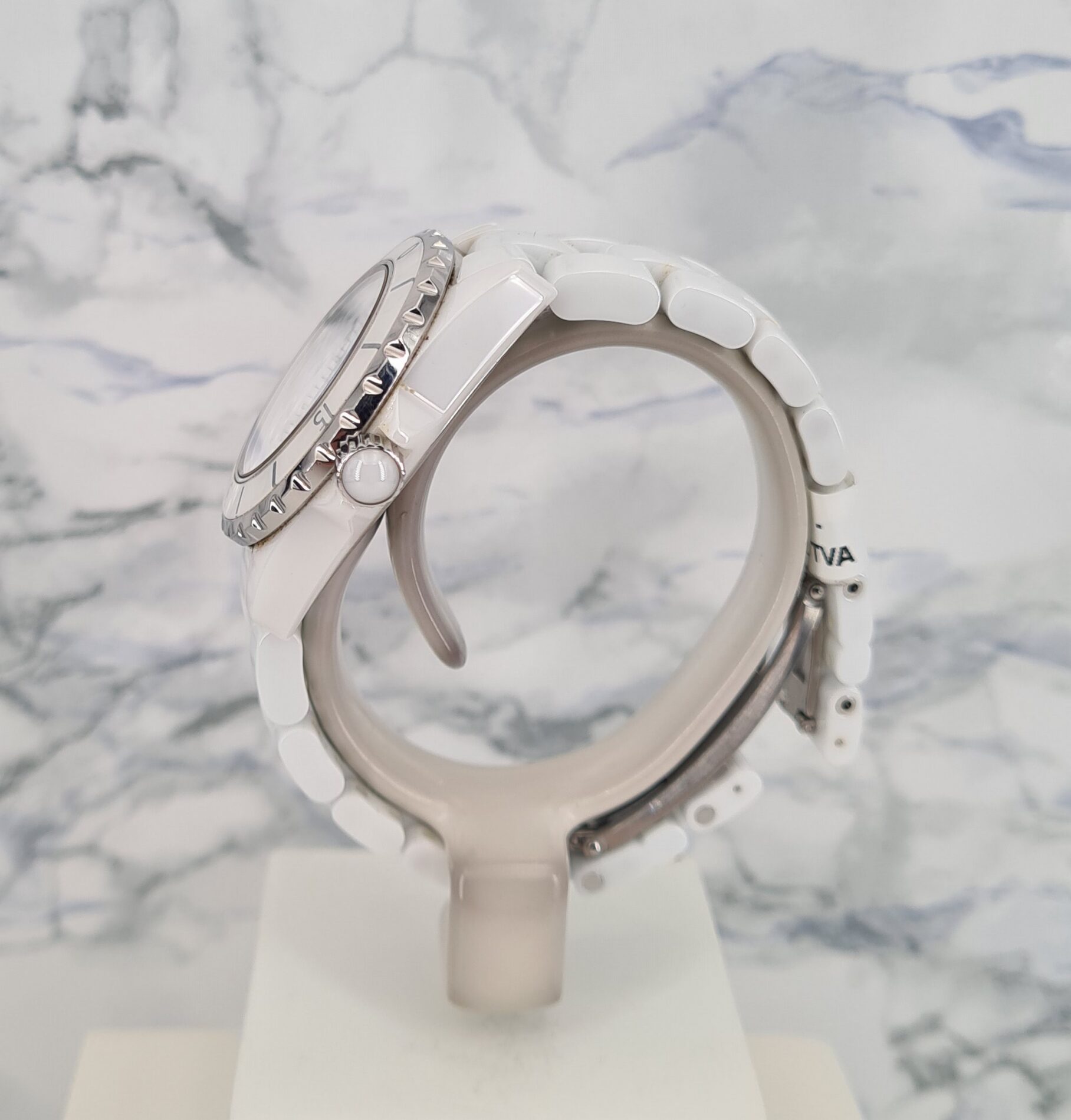 Modèle iconique de la marque Chanel, la J12 a révolutionné son temps en proposant une montre de luxe avec boitier et bracelet en céramique à haute résistance aux rayures ainsi que d’une étanchéité de 200m ce qui lui confère un ADN de plongeuse.