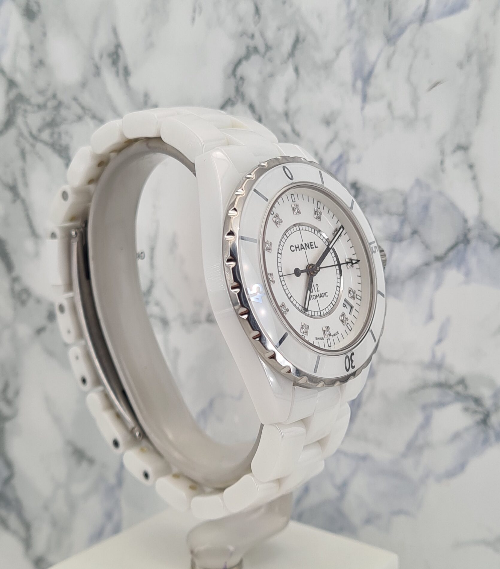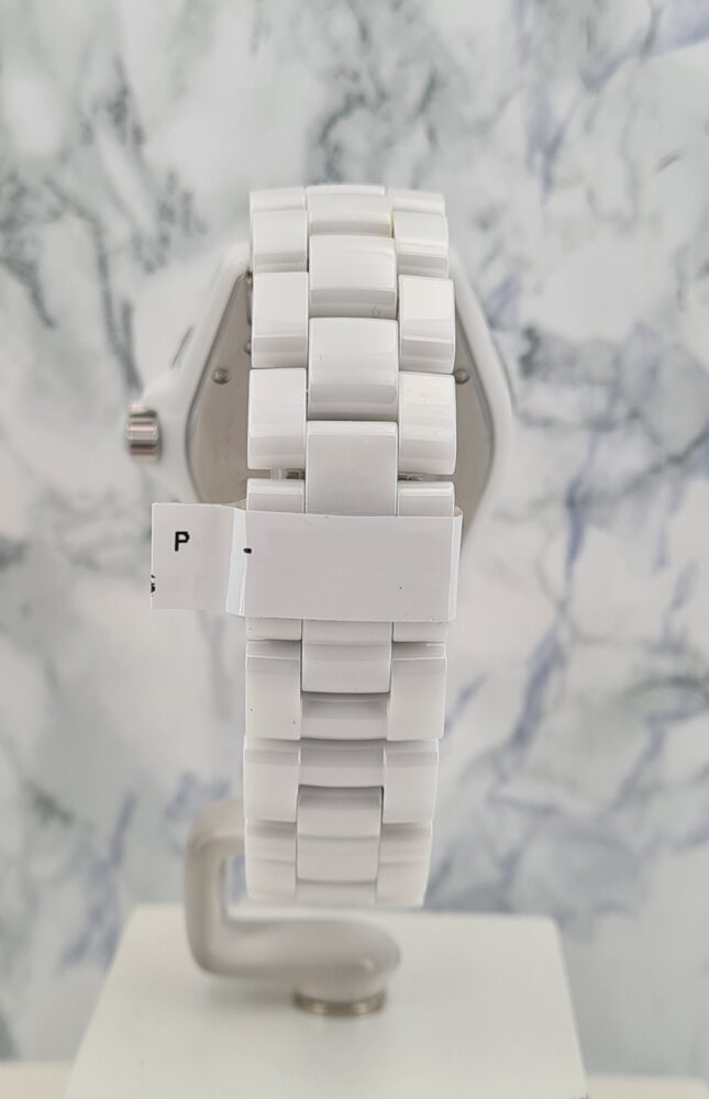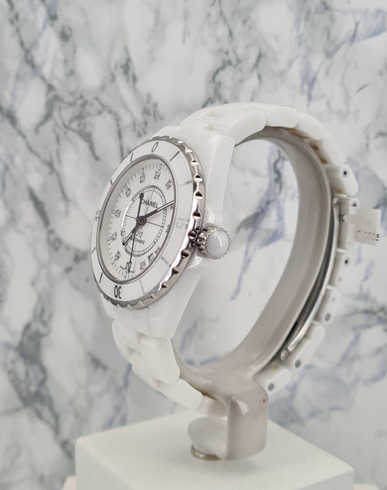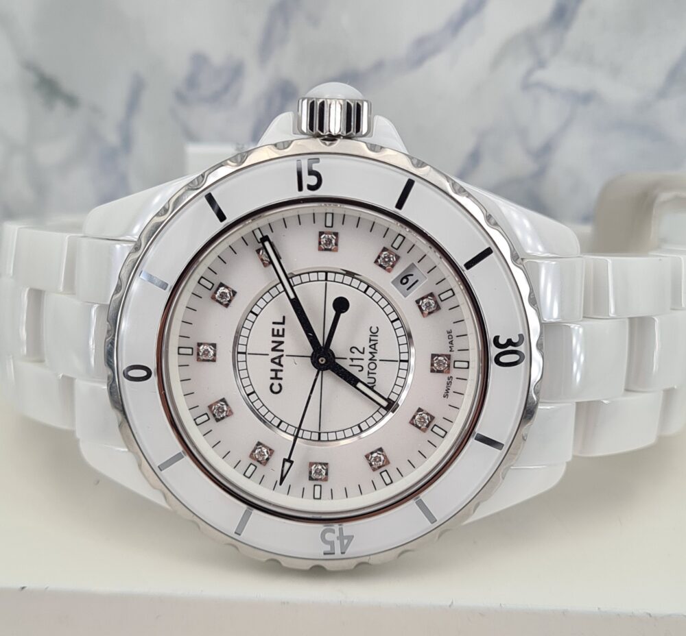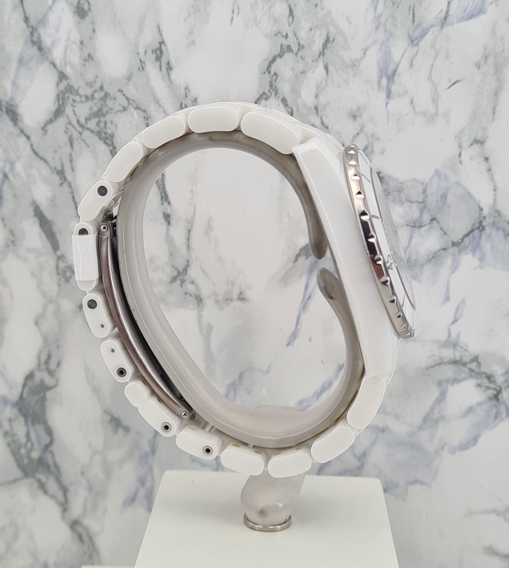 Modèle iconique de la marque Chanel, la J12 a révolutionné son temps en proposant une montre de luxe avec boitier et bracelet en céramique à haute résistance aux rayures ainsi que d’une étanchéité de 200m ce qui lui confère un ADN de plongeuse.