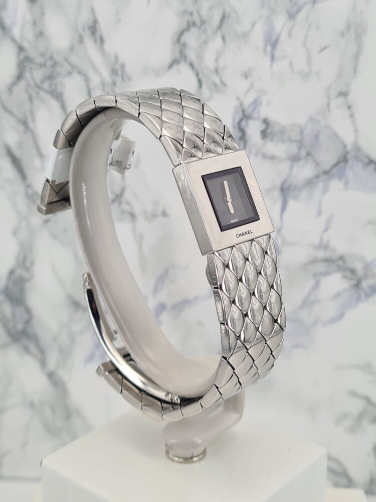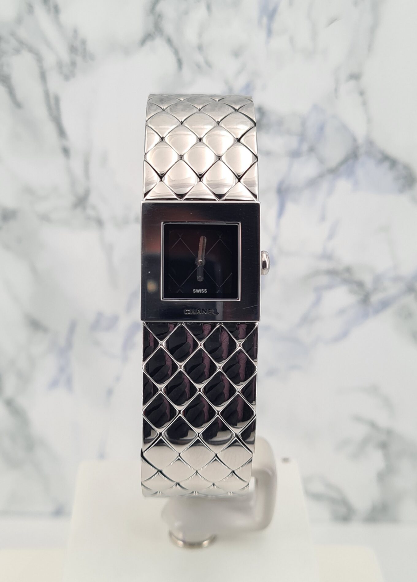 Elégante et discrète, la montre Chanel Matelassé est un véritable clin d’oeil aux sacs de la marque : son nom et sa forme rappellent le célèbre motif matelassé Chanel.