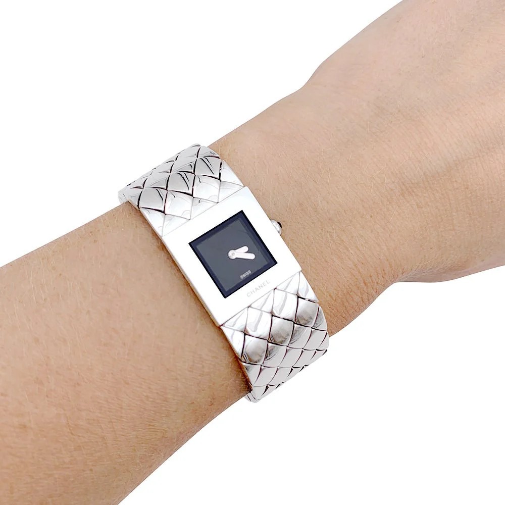Large mais féminine, la montre Matelassé de Chanel est arborée par des femmes du monde entier pour sa simplicité.