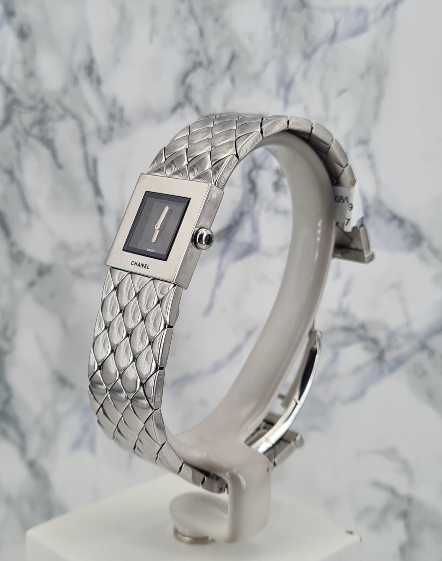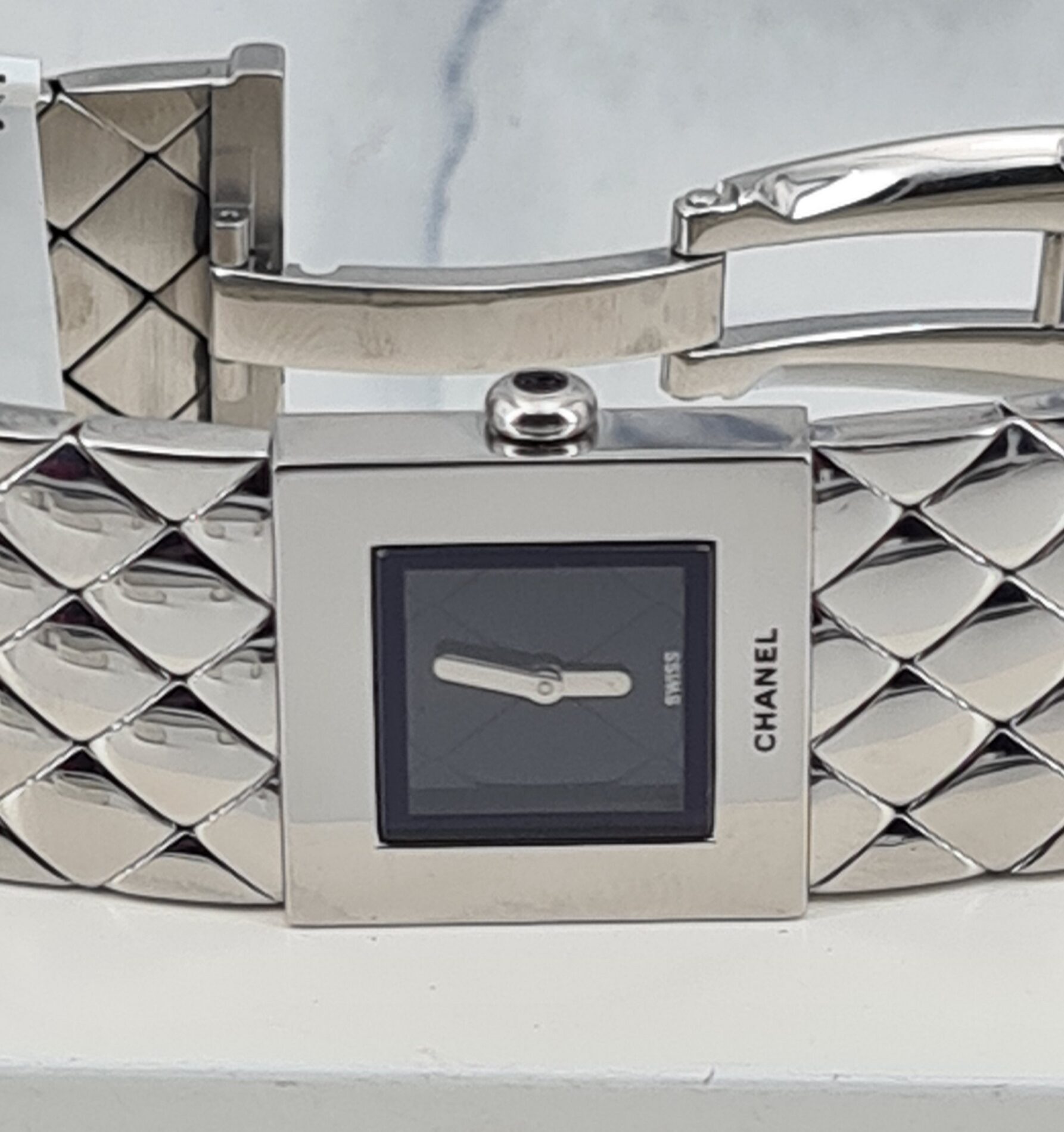 Elégante et discrète, la montre Chanel Matelassé est un véritable clin d’oeil aux sacs de la marque : son nom et sa forme rappellent le célèbre motif matelassé Chanel.