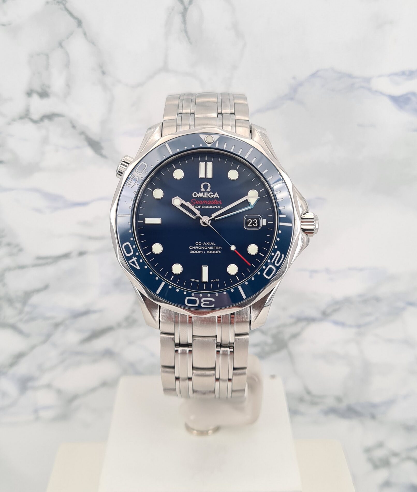Avec son échelle de plongée caractéristique, ses aiguilles squelettées, ses audacieux index en relief et sa valve à hélium, la Diver 300M, lancée en 1993, propose une façon élégante de lire l’heure lors de vos aventures sous-marines.