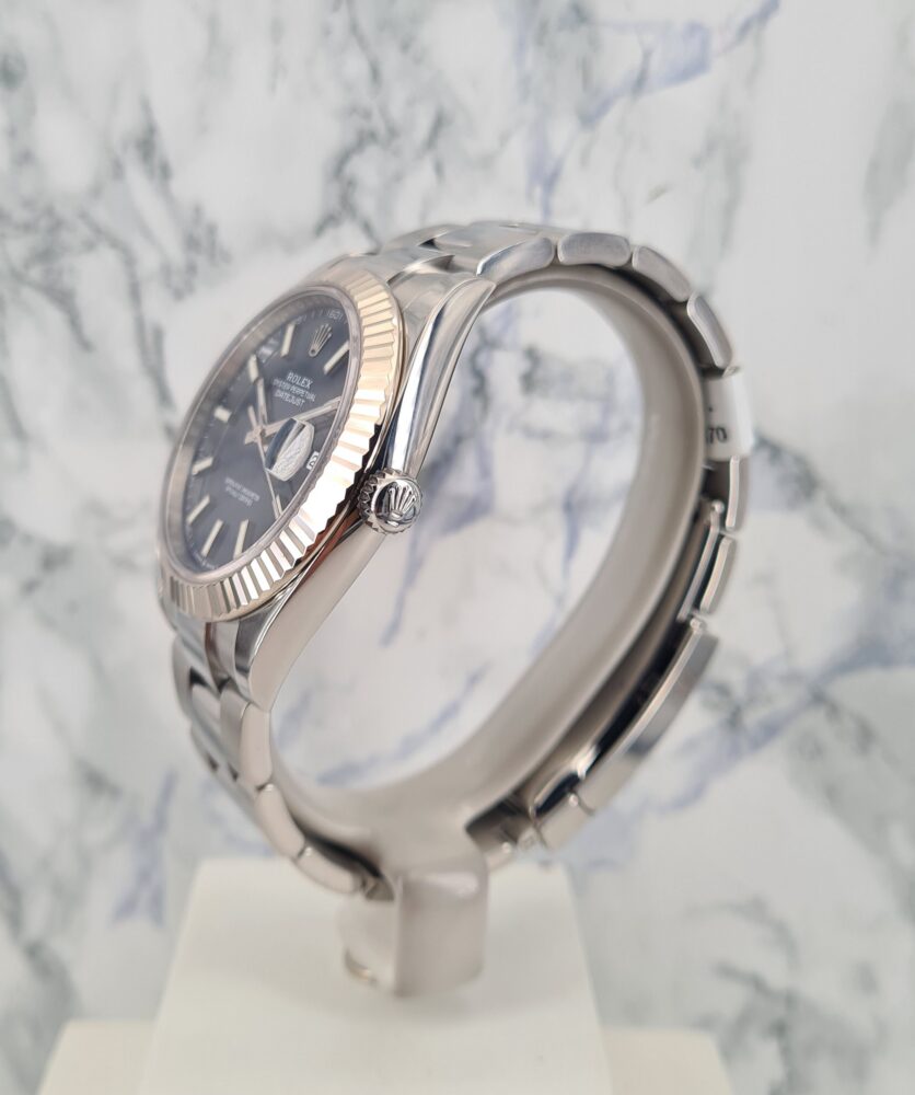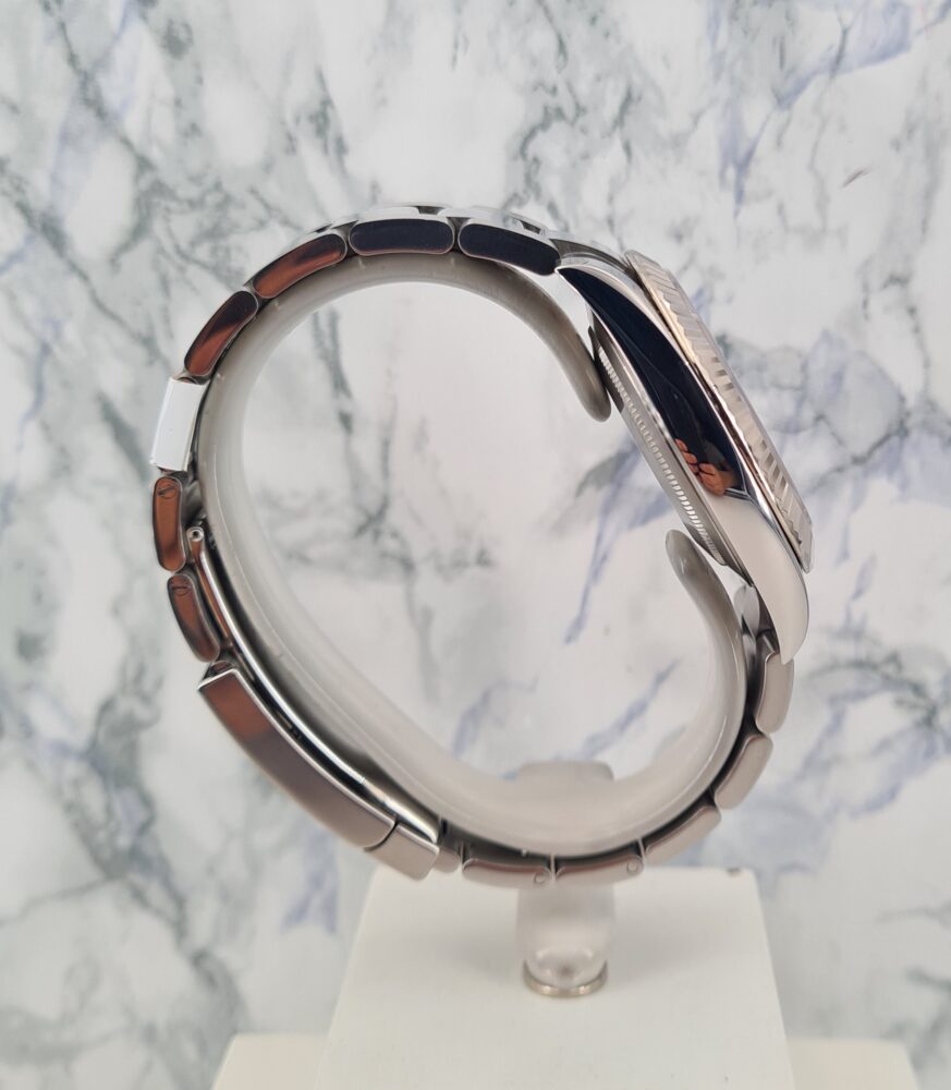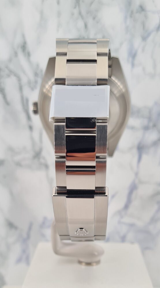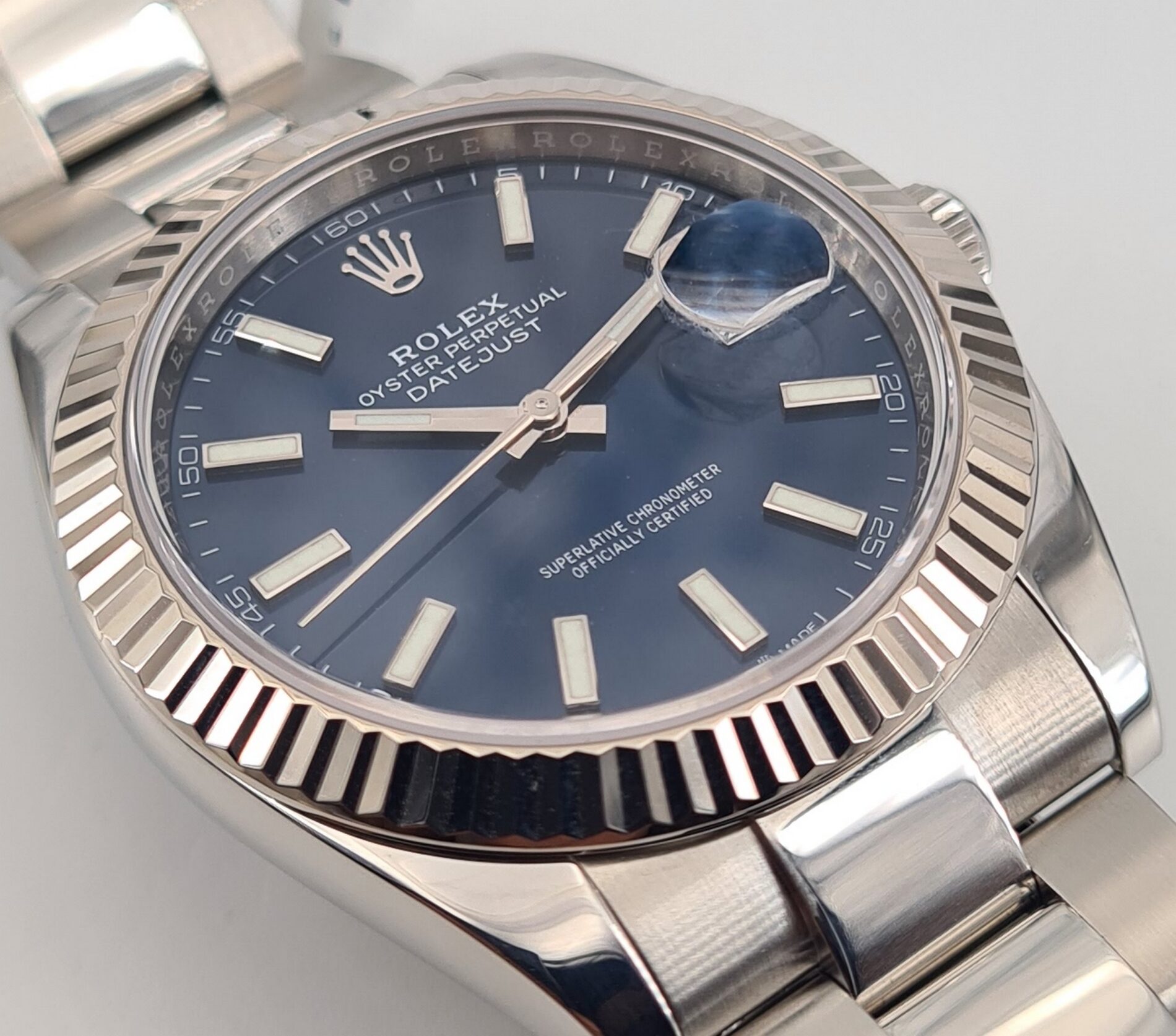 La Datejust 41 perpétue bien évidemment la tradition de la Datejust, modèle emblématique de Rolex créé en 1945 et première montre-bracelet Chronomètre, automatique et étanche à afficher la date dans un guichet sur le cadran.Le boîtier Oyster de 41 mm de la Datejust II, garanti étanche jusqu’à 100 mètres, est un exemple de robustesse. Sa carrure aux formes caractéristiques est taillée dans un bloc massif d’acier 904L particulièrement résistant à la corrosion. Le fond cannelé est hermétiquement vissé à l’aide d’un outil spécial propre aux horlogers Rolex.