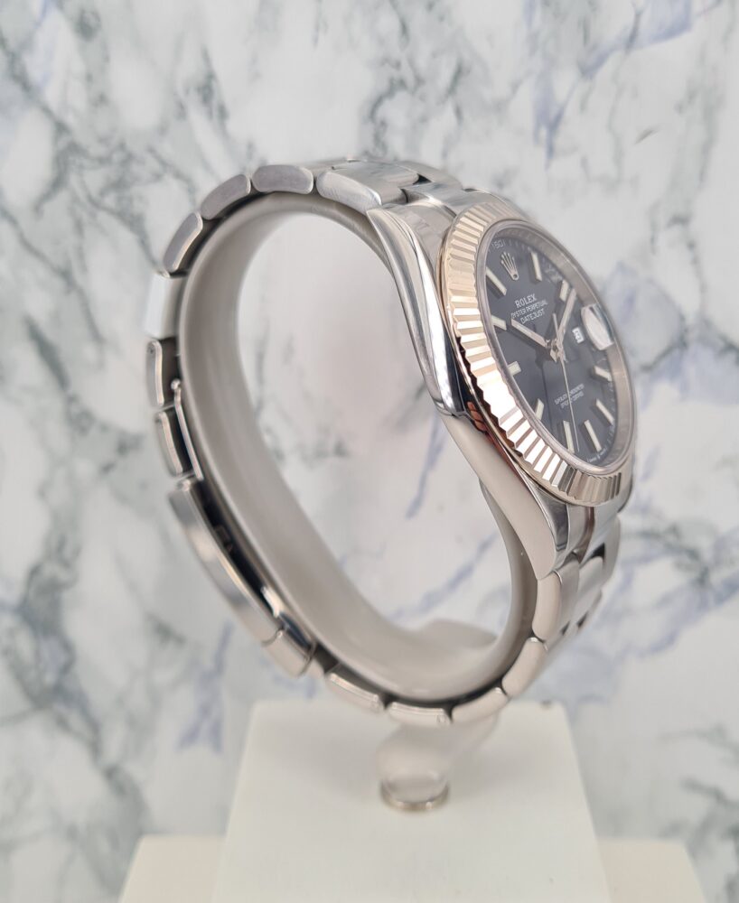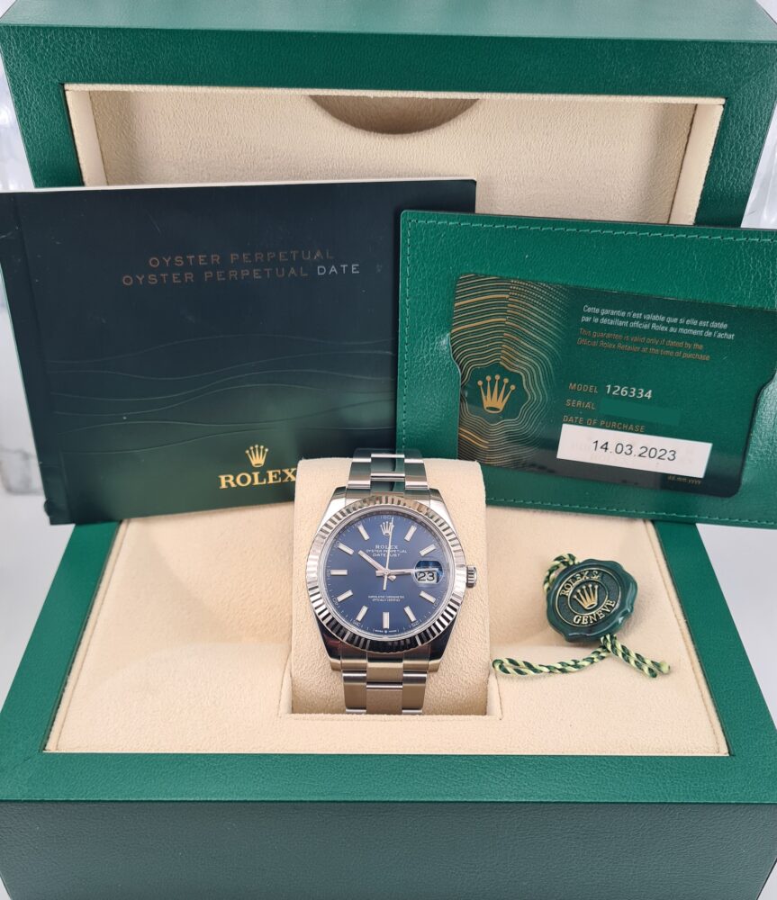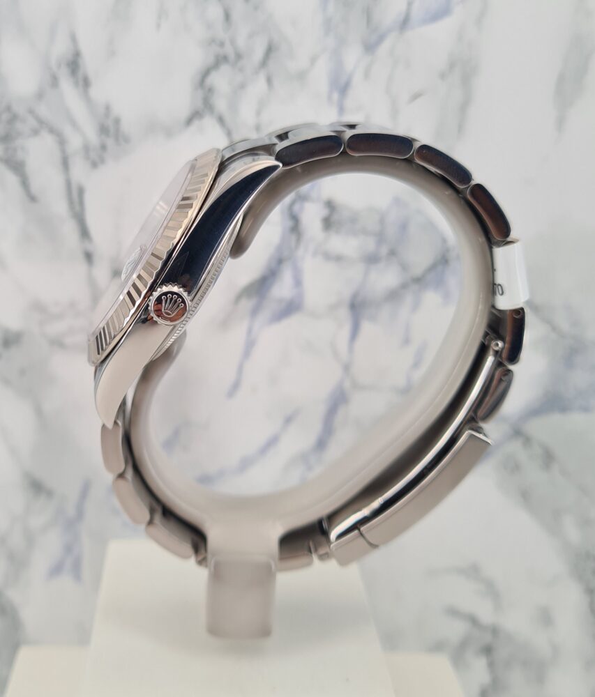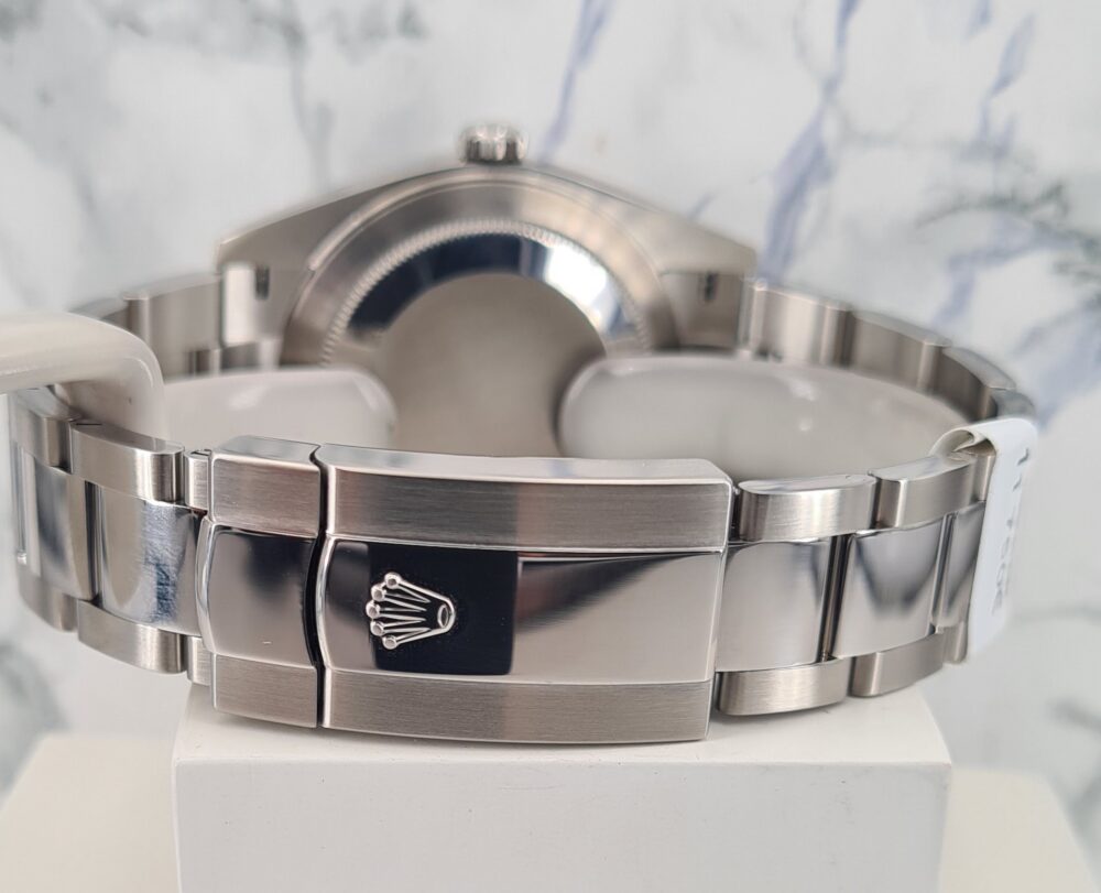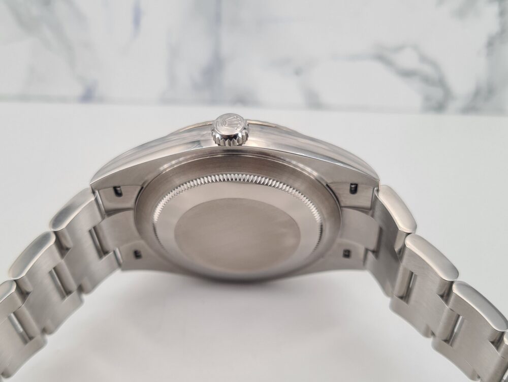 La Datejust 41 perpétue bien évidemment la tradition de la Datejust, modèle emblématique de Rolex créé en 1945 et première montre-bracelet Chronomètre, automatique et étanche à afficher la date dans un guichet sur le cadran.Le boîtier Oyster de 41 mm de la Datejust II, garanti étanche jusqu’à 100 mètres, est un exemple de robustesse. Sa carrure aux formes caractéristiques est taillée dans un bloc massif d’acier 904L particulièrement résistant à la corrosion. Le fond cannelé est hermétiquement vissé à l’aide d’un outil spécial propre aux horlogers Rolex.