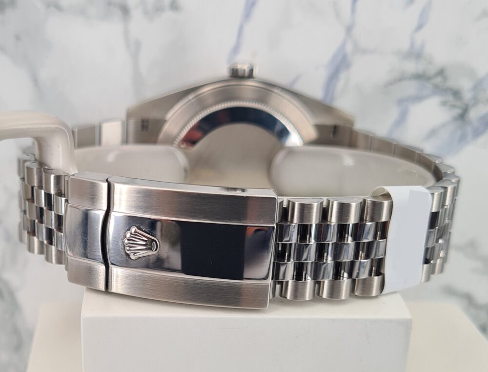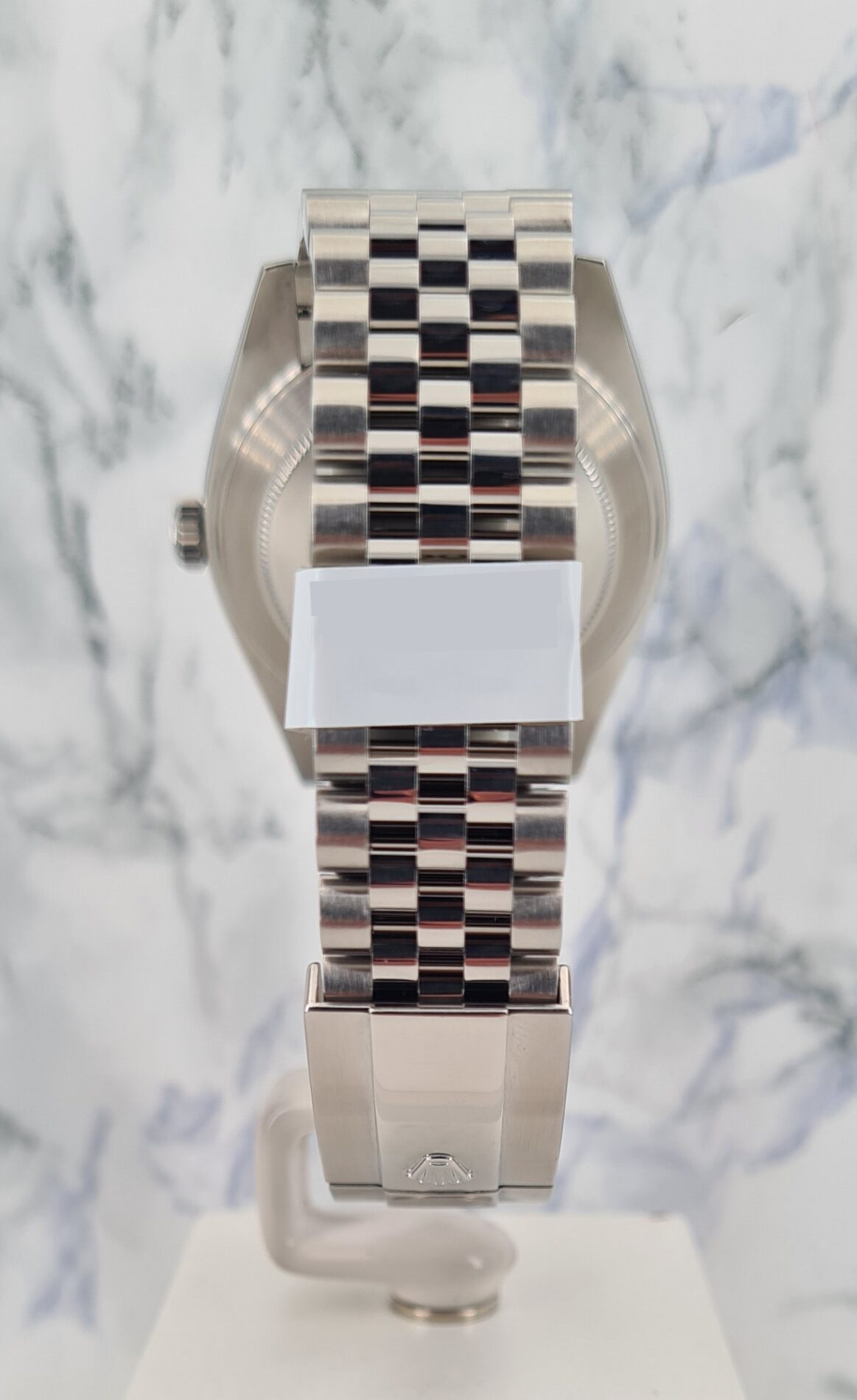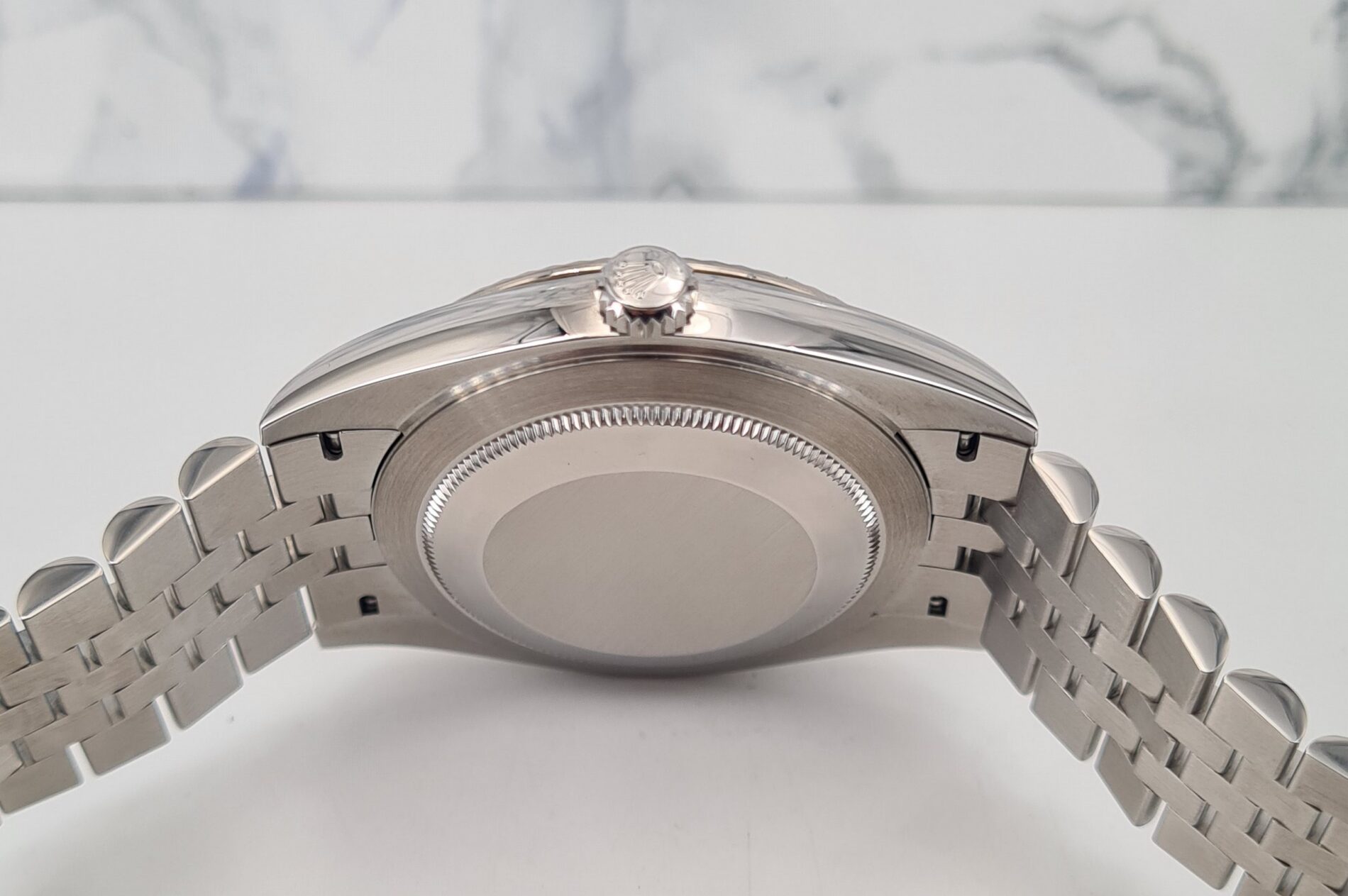 La Datejust II perpétue bien évidemment la tradition de la Datejust, modèle emblématique de Rolex créé en 1945 et première montre-bracelet Chronomètre, automatique et étanche à afficher la date dans un guichet sur le cadran.Le boîtier Oyster de 41 mm de la Datejust II, garanti étanche jusqu’à 100 mètres, est un exemple de robustesse. Sa carrure aux formes caractéristiques est taillée dans un bloc massif d’acier 904L particulièrement résistant à la corrosion. Le fond cannelé est hermétiquement vissé à l’aide d’un outil spécial propre aux horlogers Rolex.