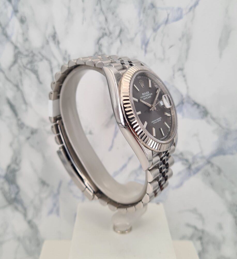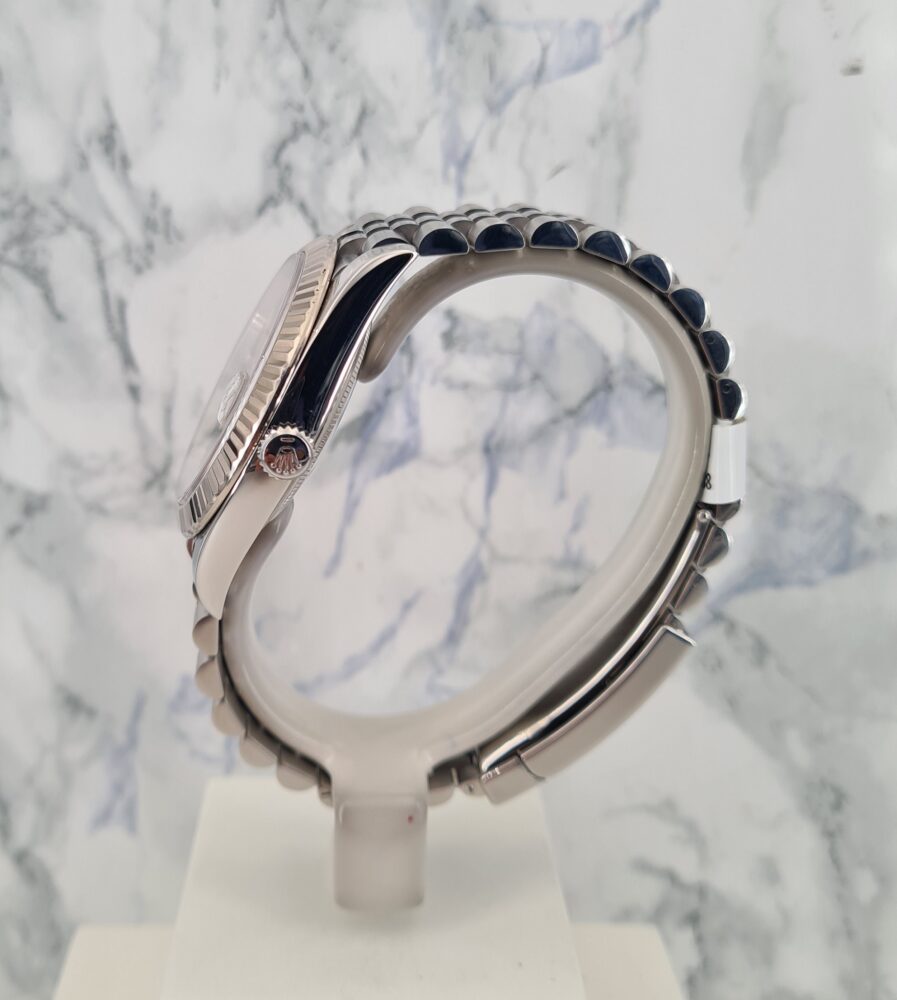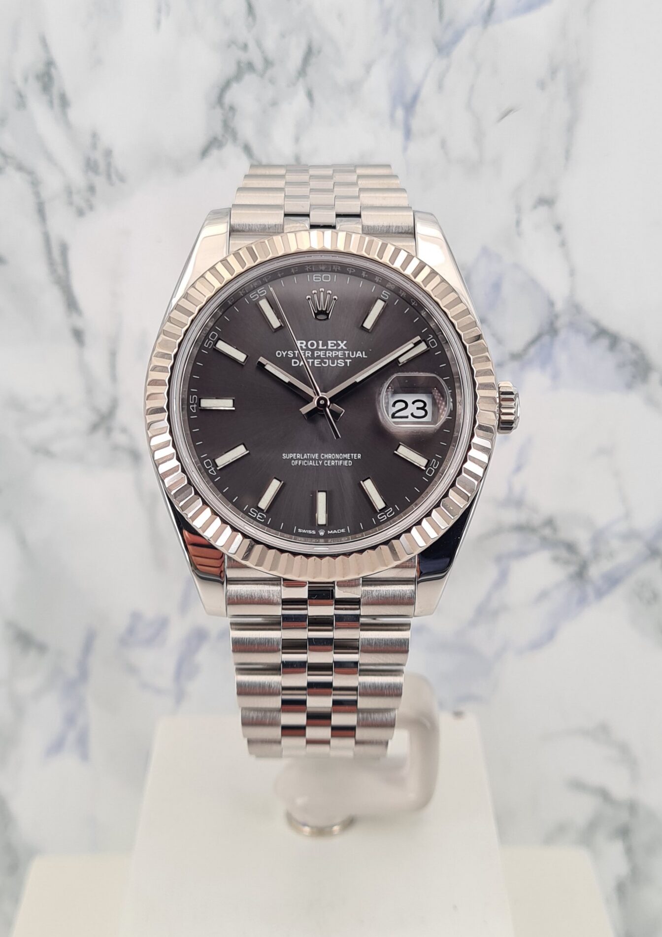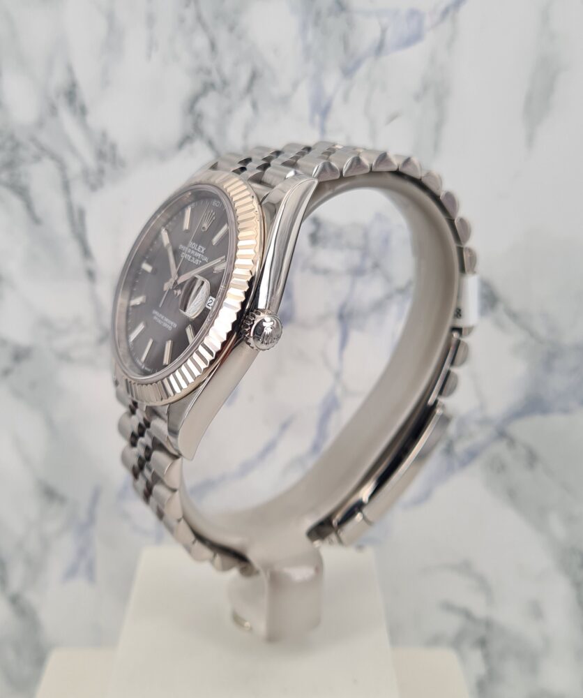 La Datejust II perpétue bien évidemment la tradition de la Datejust, modèle emblématique de Rolex créé en 1945 et première montre-bracelet Chronomètre, automatique et étanche à afficher la date dans un guichet sur le cadran.Le boîtier Oyster de 41 mm de la Datejust II, garanti étanche jusqu’à 100 mètres, est un exemple de robustesse. Sa carrure aux formes caractéristiques est taillée dans un bloc massif d’acier 904L particulièrement résistant à la corrosion. Le fond cannelé est hermétiquement vissé à l’aide d’un outil spécial propre aux horlogers Rolex.