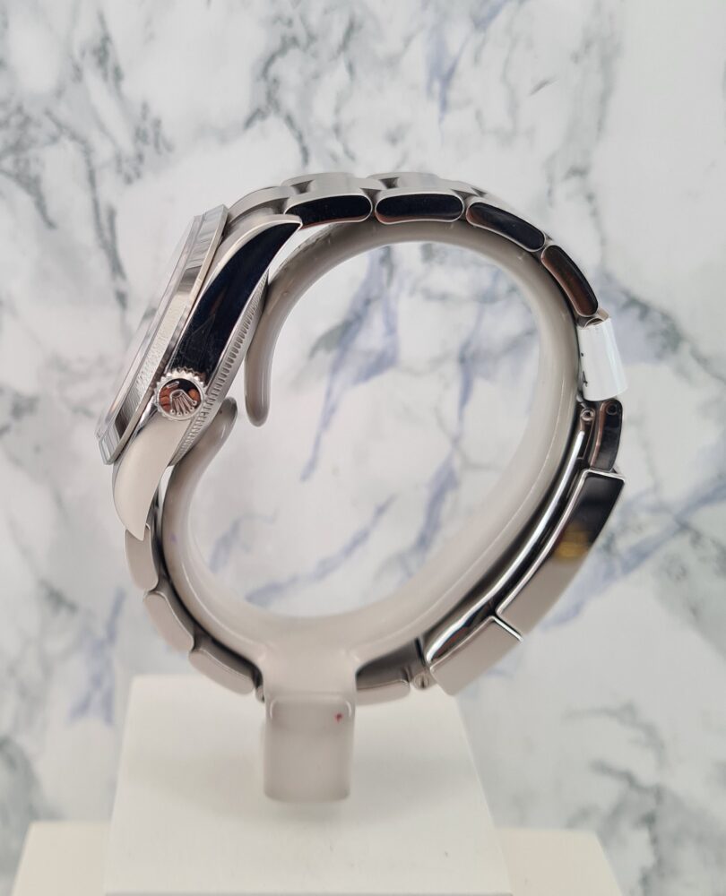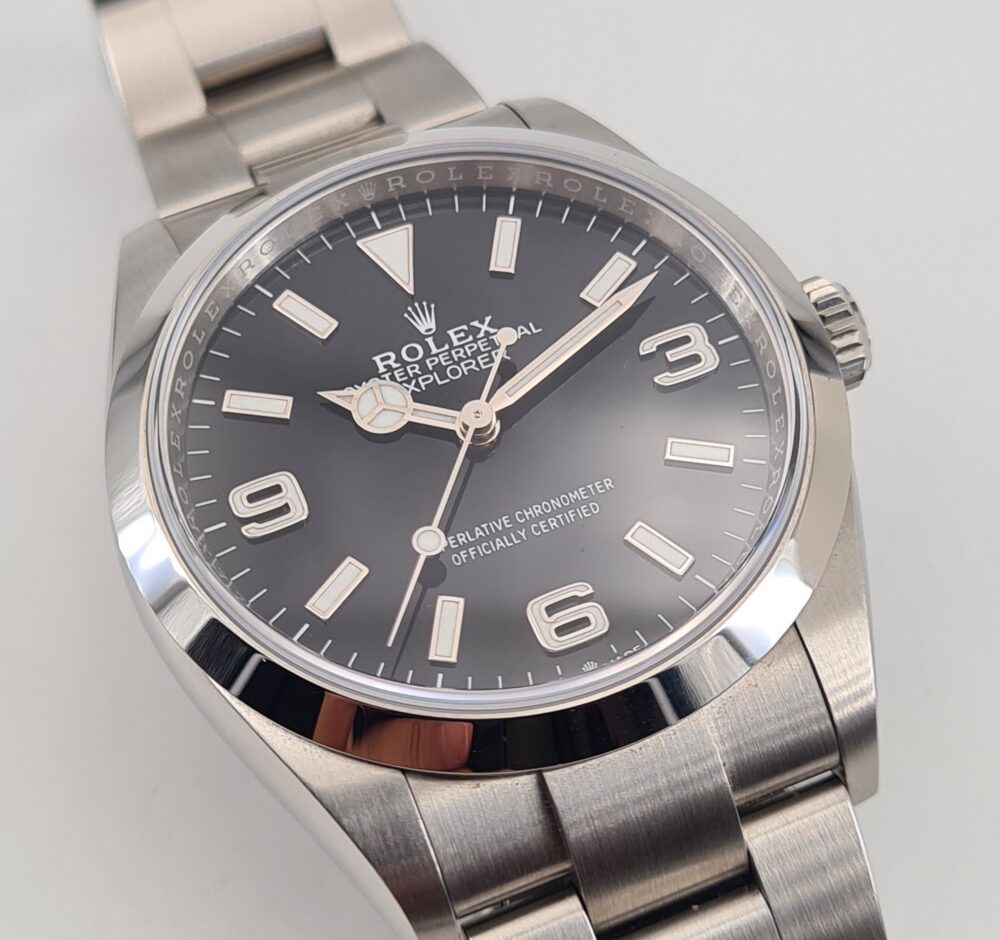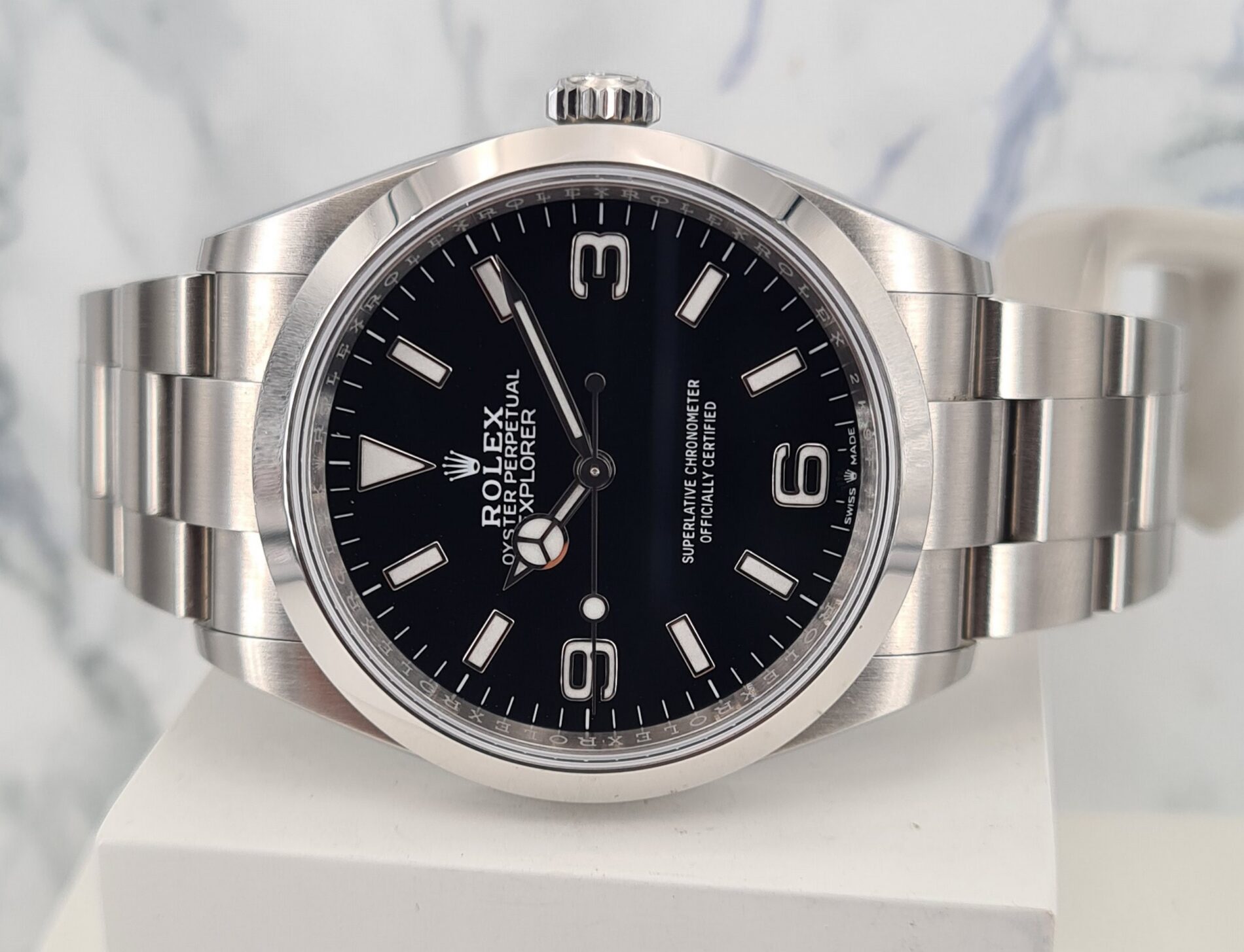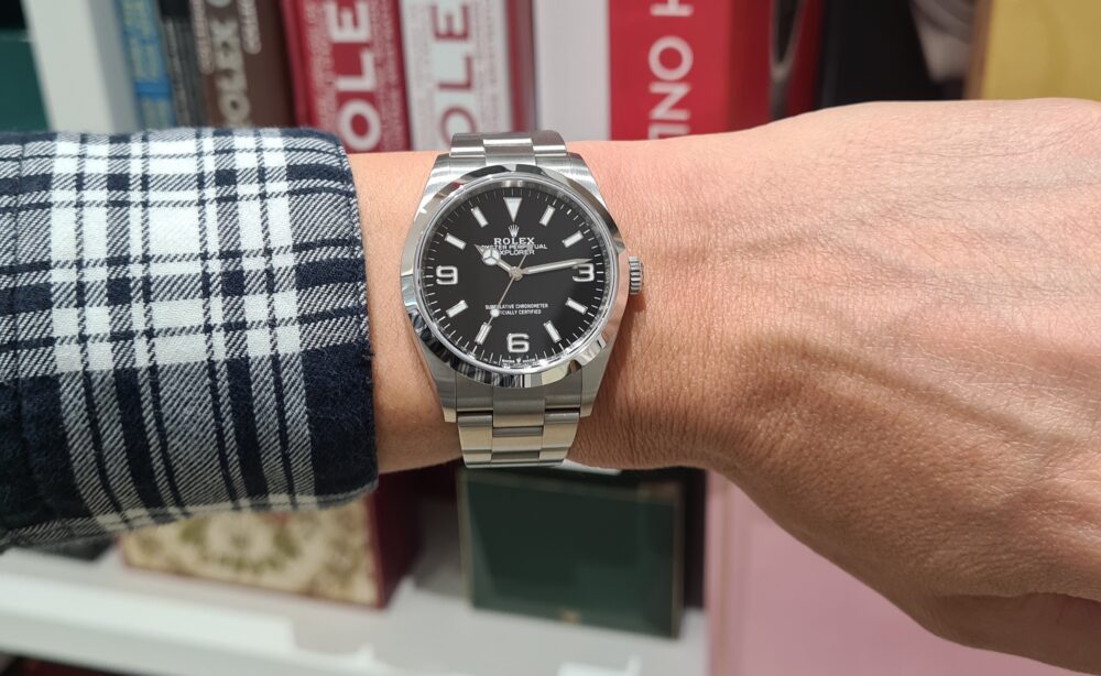 On retrouve dans la version 124270 tout ce qui nos plaît tant chez l’Explorer mais en version moderne avec toujours un cadran d’une sobriété exceptionnelle, une belle lisibilité, des aiguilles de type “Mercedes“, une montre fine, qui lévite presque sur le poignet. Nos 3,6 et 9 sont toujours présents.